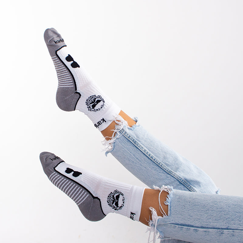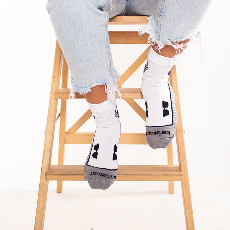 Wir haben natürlich etwas schlichtere Socken im Angebot wie unsere BASIC BLACK oder CLASSIC WHITE Socken, die du im Büro oder zum Einkaufen anziehen kannst und die eher unauffällig wirken.