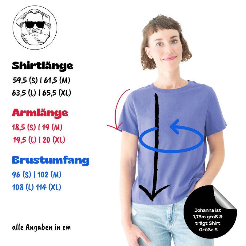 Oder aber du nutzt unsere Größentabelle, um das passende Damen T-Shirt zu wählen.