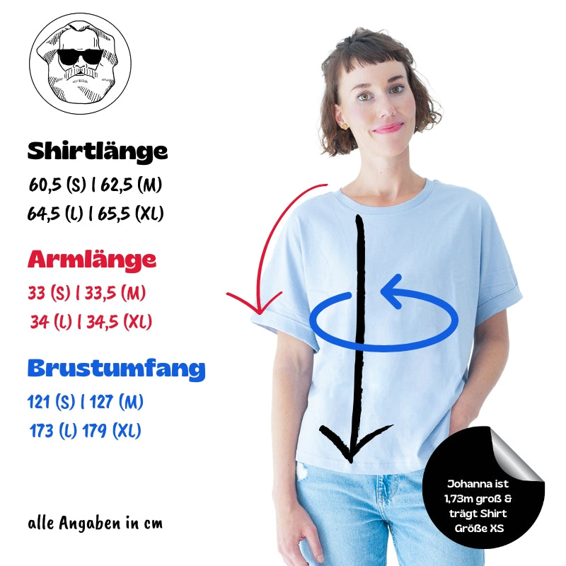 Oder aber du nutzt unsere Größentabelle, um das passende Damen T-Shirt oversized zu wählen.
